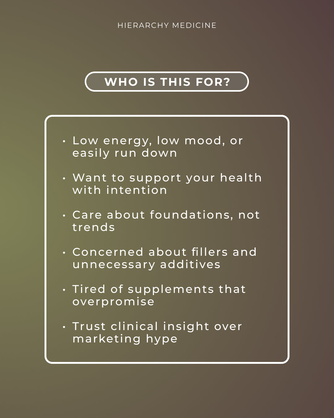 Vitamin D is not just a “bone vitamin.” It acts more like a hormonal signal, influencing immune response, nervous system balance, mood regulation, and structural health. Because it touches so many systems at once, it is one of the first nutrients we prioritize in building a stable physiological foundation.